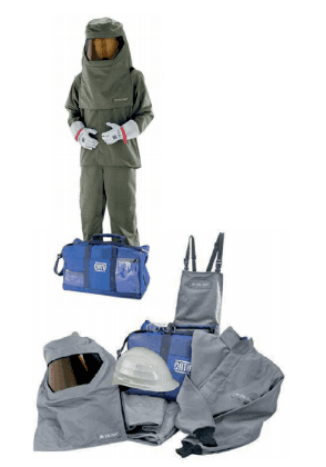 When electric arc danger exists, heat-resistant clothing must be worn. The arc’s characteristics are given by: The resistance value of the free arc, expressed in cal/cm2 according to NFPA 70 E, ASTM standards, and IEC 61482-1-1. or The protection class (1 or 2) with a constrained arc according to IEC 61482-1-2.