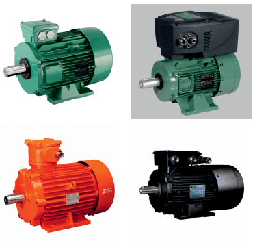 Three-phase induction motors IE1, IE2, IE3, IE4 efficiency, Aluminum, cast iron or steel frame IP 55 or IP 23 - 0.09 to 1500 kWIntegrated drives on three-phase induction motors
